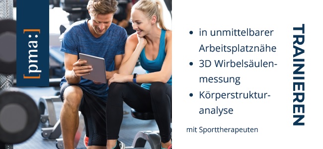 Unsere Gruppe trainiert in den Räumlichkeiten der Firma pma. Es finden diverse Kurse mit unterschiedlichen Inhalten und Schwierigkeitsstufen statt.Das Training an Geräten ist nur nach vorheriger Einweisung durch unsere Trainer möglich. Terminvereinbarung bei Katarina Orlovic: 0251-3845000140.Adresse: Wilhelm-Schickard-Straße 4!